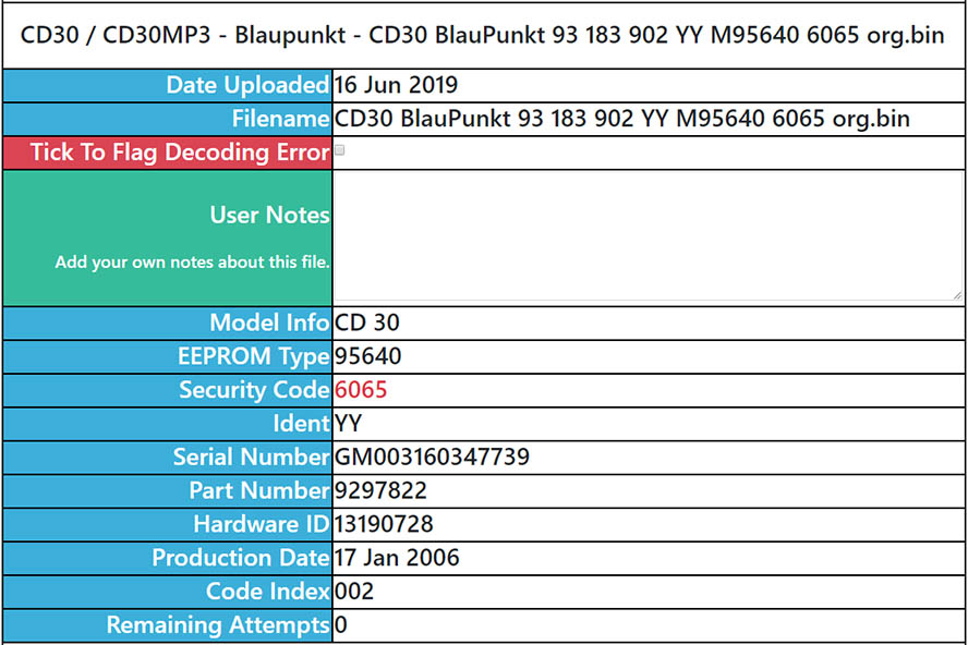 | CD30 / CD30MP3 - Blaupunkt | 185 |